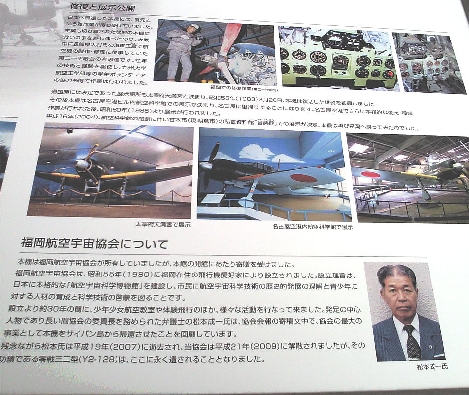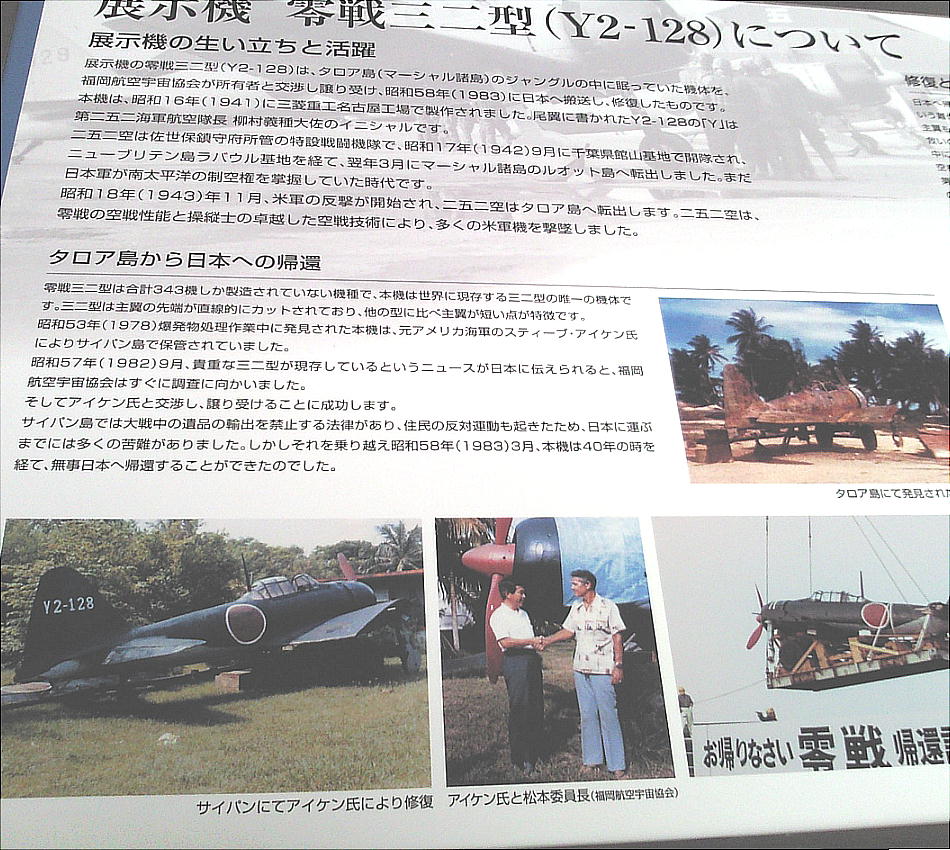 新館開館にともない飛行機愛好者でつくる「福岡航空宇宙協会」が所有していた旧海軍の零式艦上戦闘機三二型が寄贈された。