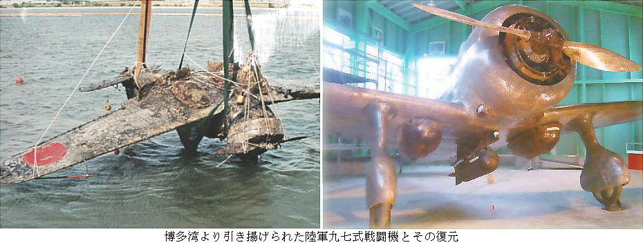 平成8年に博多湾で見つかった九七式戦闘機(九七戦)。