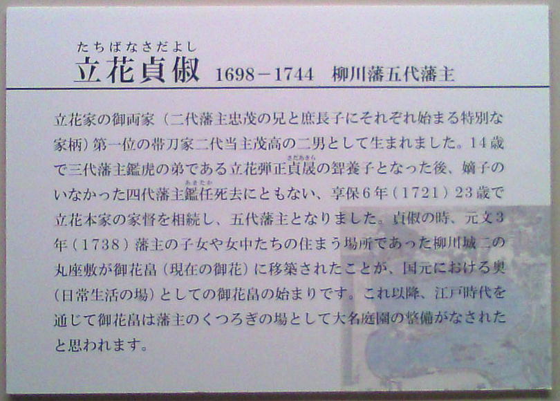 二の丸にあった奥(江戸幕府大奥に相当)が同所に移転され、以降は御花畠と呼称されるようになる。旧藩主立花家が経営する料亭