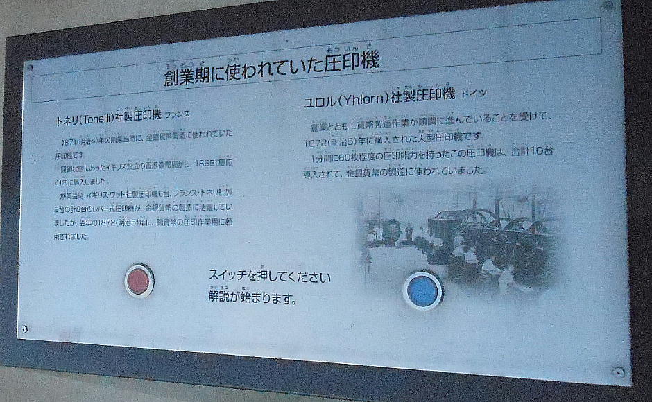(1871年)の創業当初、金・銀貨幣の製造に使われていた圧印機です。