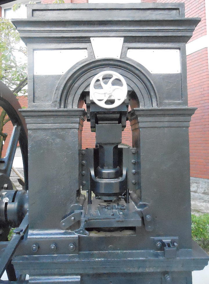 慶応4年(1868年)、閉鎖状態にあったイギリスの香港造幣局の機械一式を6万両で購入した圧印機のうちの1台で、明治4年