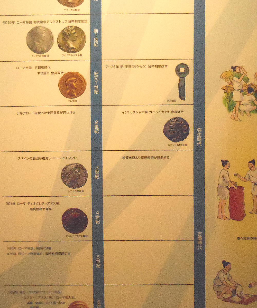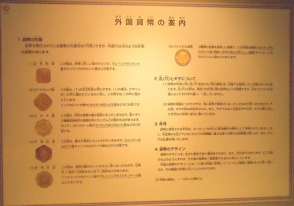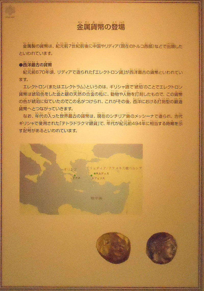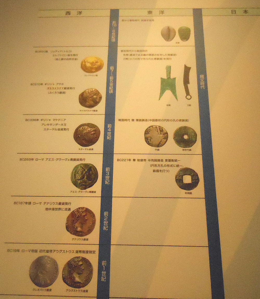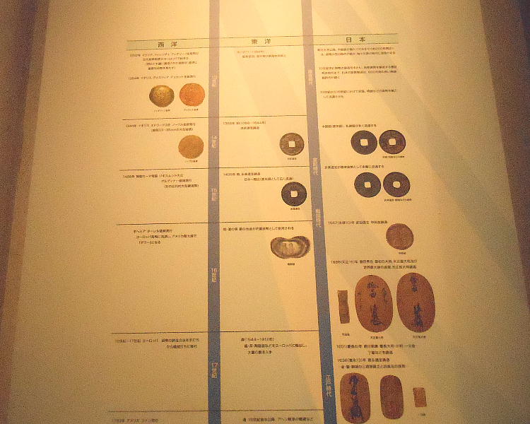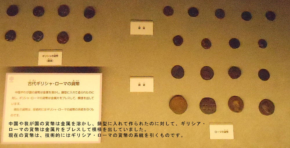 3階展示室には、以下のような様々な貨幣が展示されている。