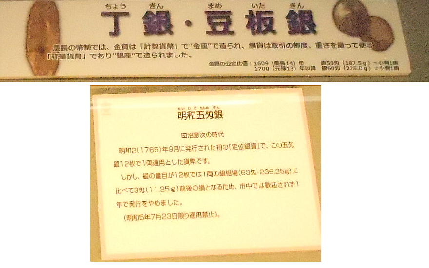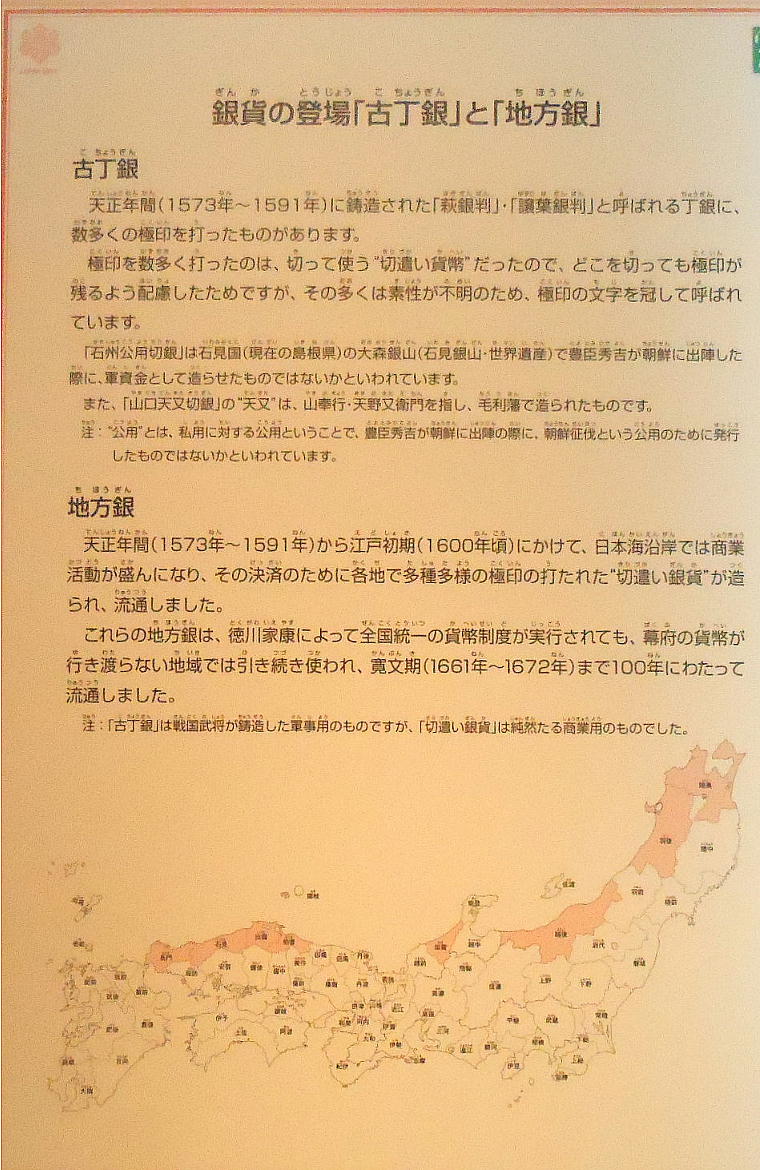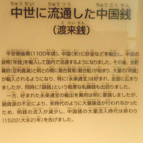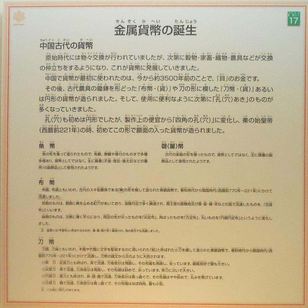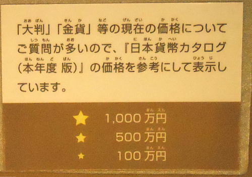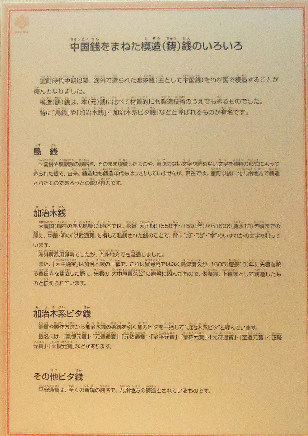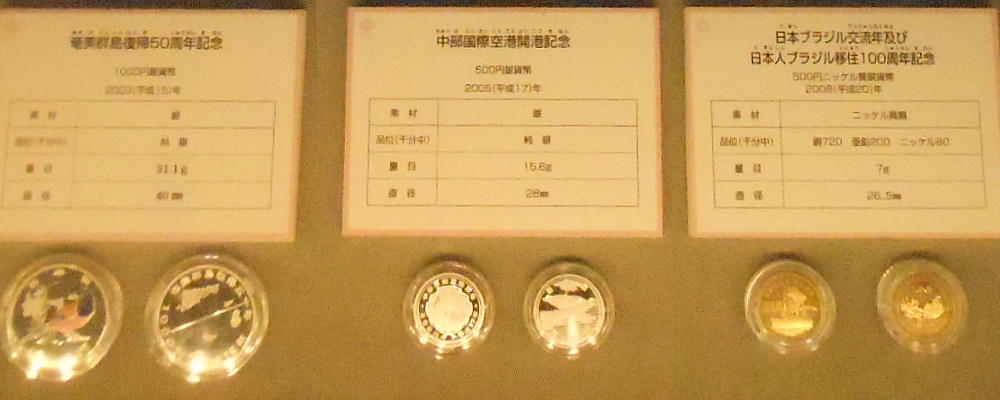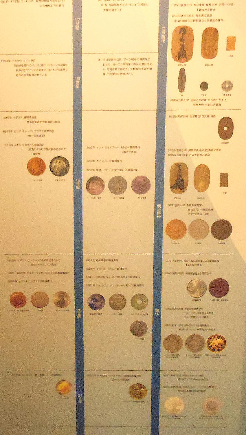 3階展示室には、以下のような様々な貨幣が展示されている。