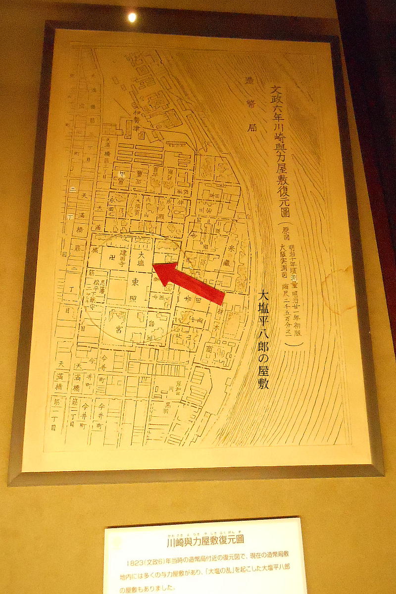 大塩平八郎の屋敷があったあたりは、いまでも「与力町」である。