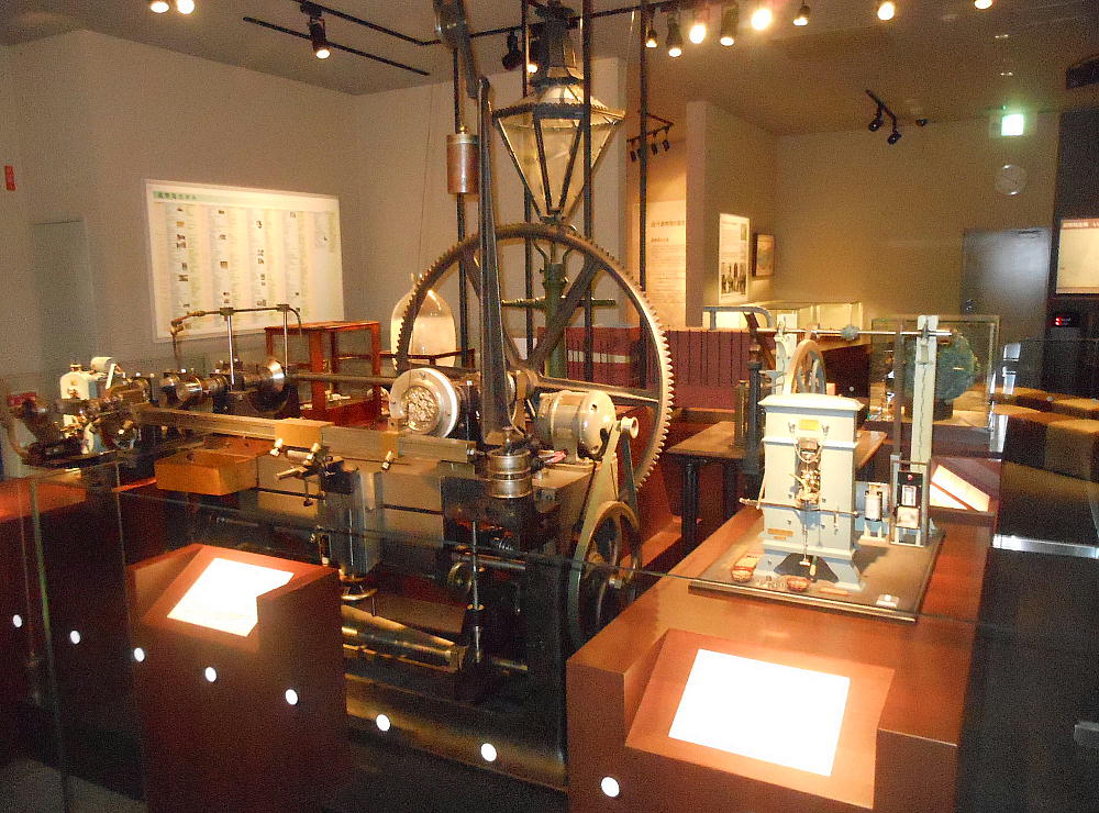 造幣博物館北側に、創業当時使用した圧印機が展示されている。
