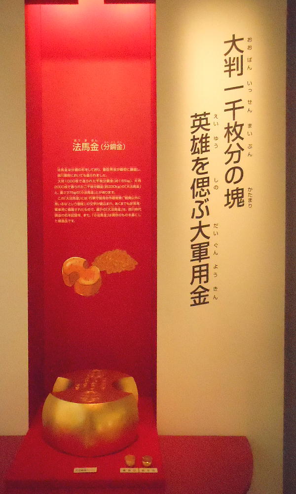 永禄、天正の頃から豪族・大名達が、軍資金として備蓄したり恩賞用としたもので、竹のような形の鋳型に流し込んで造られたとみら