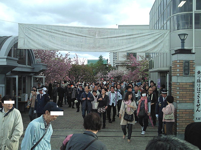 春の「造幣局通り抜け」の時にはここが出口になっていて、桜と人々が芋を洗うようにごった返している。