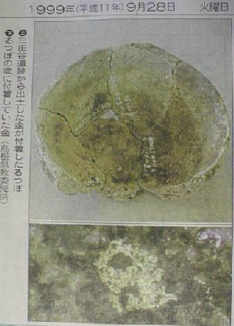 金のるつぼ出土 【朝日新聞 99.9.28(火)】