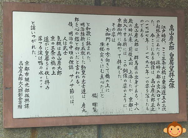 三条京阪(京都市)にある高山彦九郎の銅像 伊藤五百亀 作