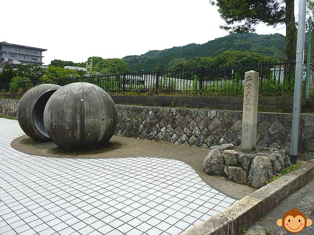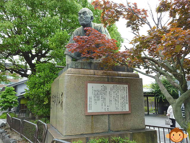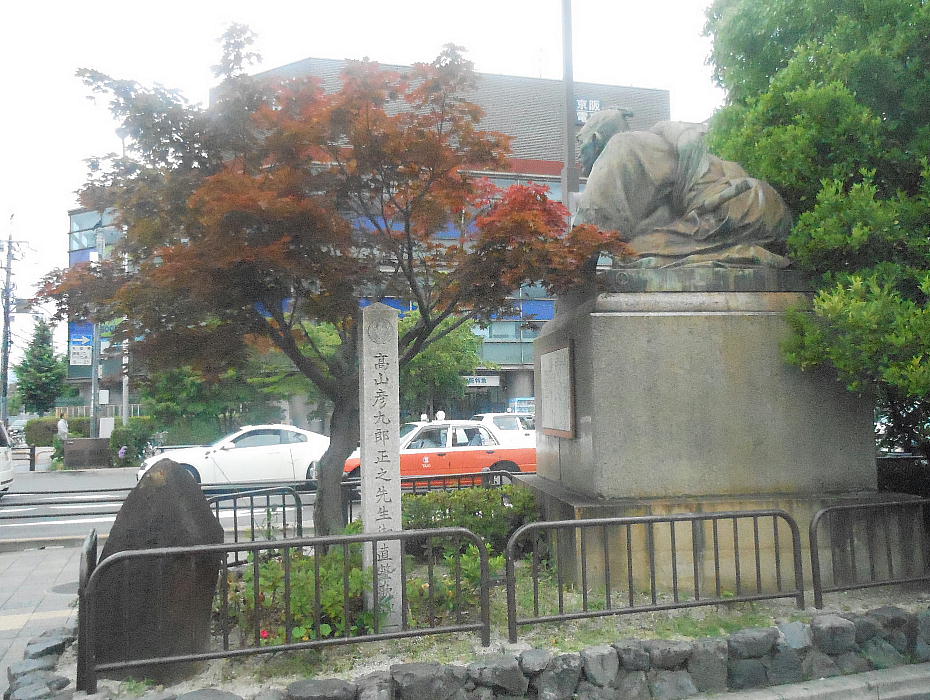 の銅像は1961年に伊藤五百亀によって再建されたものである。2代目は若干西に移動し、初代の台座跡には「高山彦九郎先生銅像趾