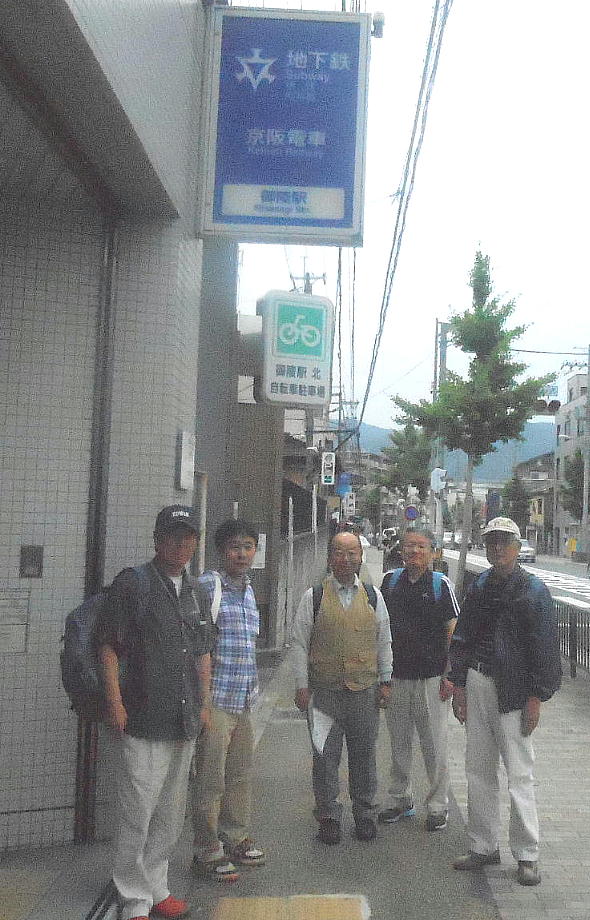今日の例会は、遺跡が京都地下鉄と京阪石山坂本線に沿って点在しているので、電車と徒歩を組併せた例会となった。三条から電
