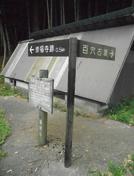 ここから百穴古墳群までは約20分ほど。途中で出会ったばあさんが、今から百穴古墳へ行くと言うと、「出るよ、出るよ」と幽霊の手