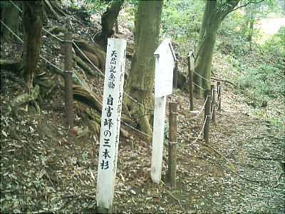 「弘文天皇陵」へ向かう河原さん、西本さん、服部さん。