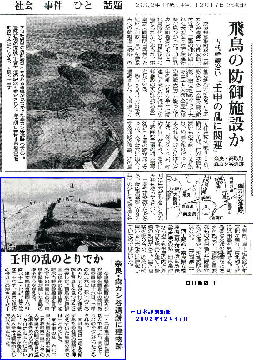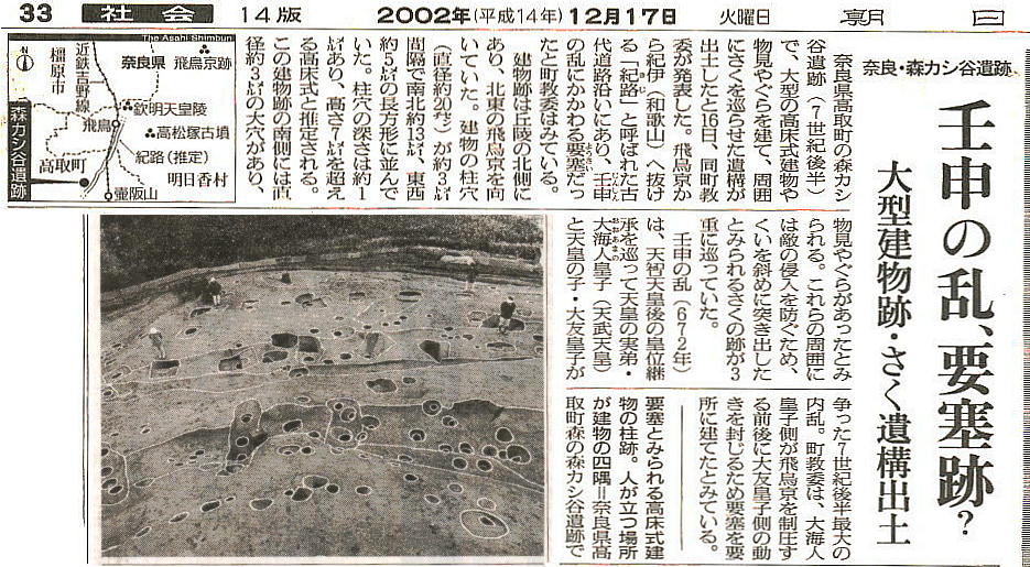 壬申の乱で大海人皇子築造か 奈良・高取の森カシ谷遺跡 2002.10.4