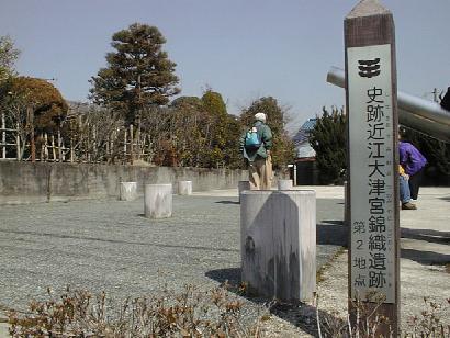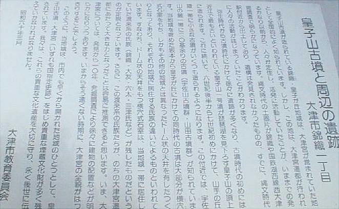 がかすれて殆ど読めないが、「言い伝えによりここに大津宮があったので記念碑を建てる」、というような事が書かれてい