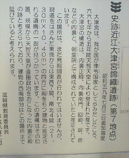 一つはその位置である。説明板にもあるように、かって大津宮の候補地は、錦織、南志賀、滋賀里の3ケ所だったが1979年