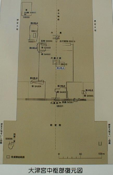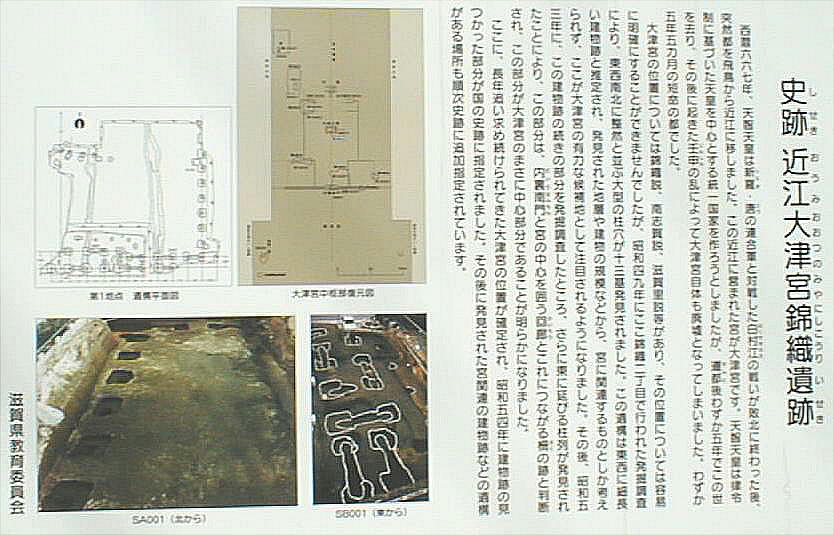 の発掘調査で錦織地区に大規模な建物跡が発見され、ここが大津宮であった事がほぼ確定した。この地は、古来からの言い