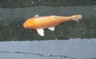 水路中に鯉が泳いでいる。たっぷり餌を貰っているのだろう、どの鯉も丸々太っていた。