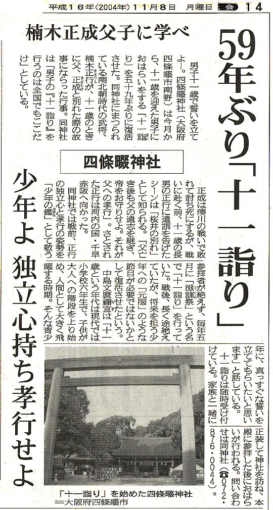4柱が合祀されたもの。脇殿に正行の母を祀る御妣(みおや)神社がある。