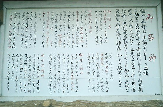 ら一族24人が祀られている。楠木正成の「大楠公」に対し、正行は「小楠公」と敬称される。