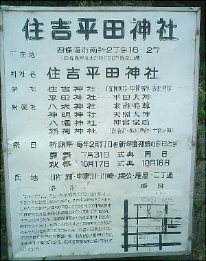 嘉永6年(1853)の南野村庄屋、重右衛門の覚え書きに「平田住吉明神」と記され、住吉神社と平田
