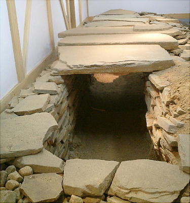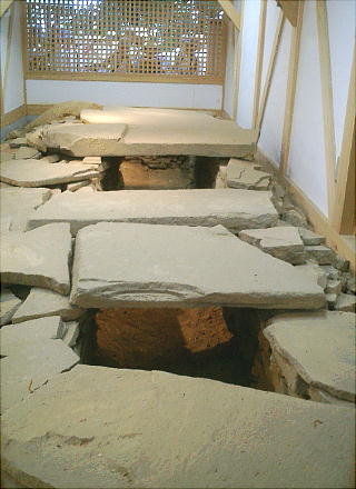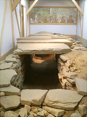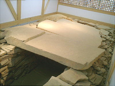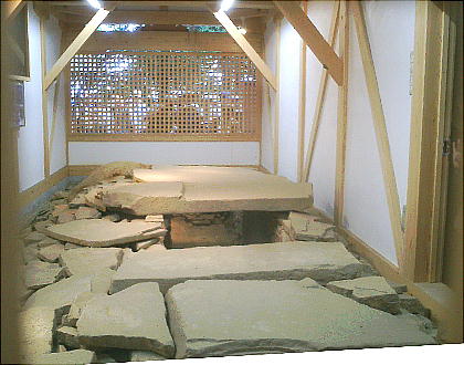 近の「双子塚」と呼ばれる古墳から出土した家型石棺だと伝えられている。