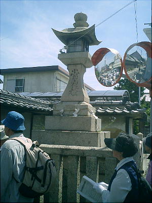 年(1830)に建立された石造りの常夜灯。常夜灯脇のこの道は、小山から葛井寺へ通じ、葛井寺・道明寺を経て、