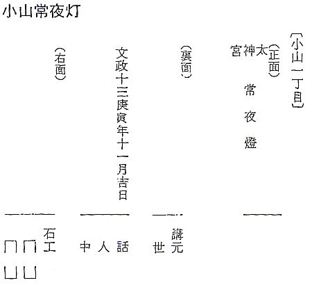 上左が小山常夜灯。各種文献にみえて、結構有名な常夜灯だったようだ。小山1丁目の住宅の南側にある。文政13