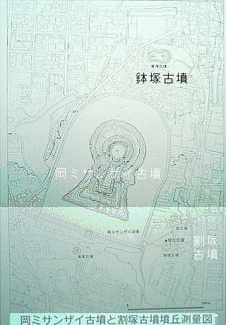 大型の前方後円墳である岡ミサンザイ古墳の北側に鉢塚古墳が、また東側には割塚古墳があります。前者は国の史跡に、