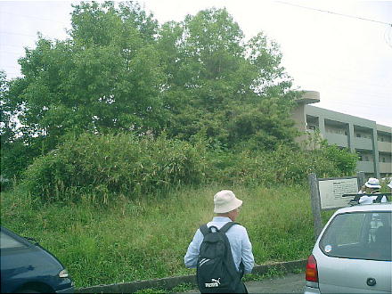 岡ミサンザイ古墳の周濠東南隅から東へ50mにある方墳。住宅地の駐車場の中に唐突にある。現在は一辺25m高さ3m