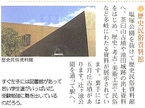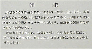 Music: Twist & shout小さな資料館である。展示室は1室しかない。しかし先史時代から近世まで一応の展示物は揃っていた。池田市には日本で 最初の分譲団地もあるくらいだから、開発の足並みは相当に早かったに違いない。おそらくはもっとたくさんの文化財があ ったのだろうが、早すぎる開発が、多くの文化財を消滅させてしまった可能性もある。