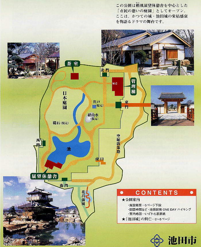 ながら忠実に基づいた再現ではないようである。室町時代から戦国時代に活躍したかつての池田城主・池田氏の居城を、「歴史をイメ