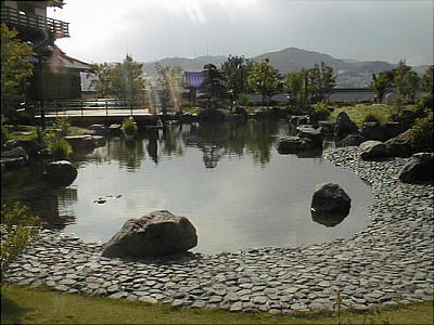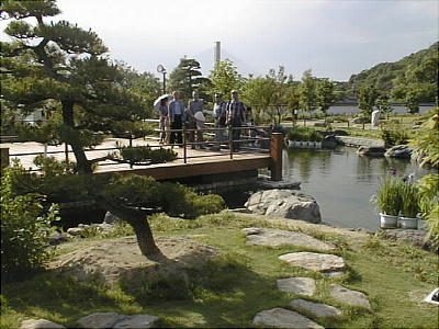 日本庭園は、自然の姿を水の流れで表現する「池泉回遊式庭園」で、「深山の景」「野の景」「海の景」の3つから成っている。園内