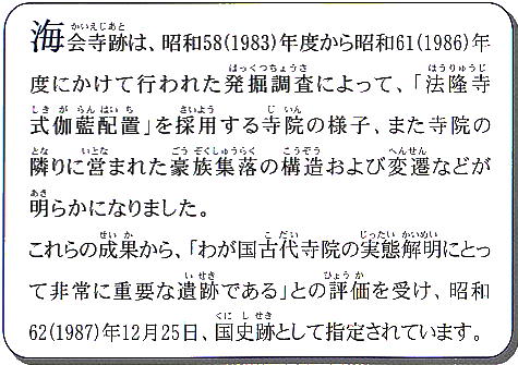 れらの事から海会寺そのものも、650年前後、ちょうど大化改新の前後に創建されたのでは無いかという推測が成り