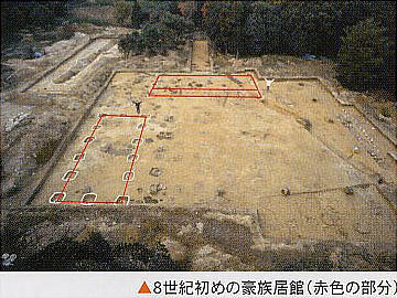 いかと考えられている。豪族の居住地と考えられるこの建物は、建物の配置軸が正確に東西南北を示しており、これは