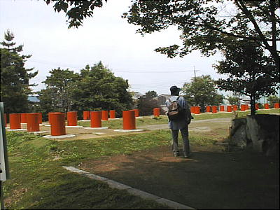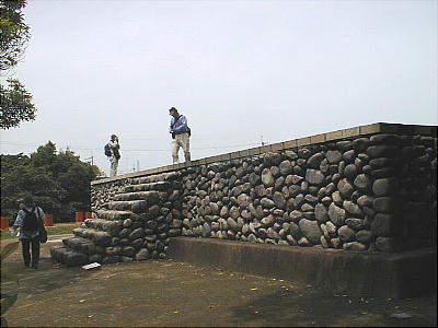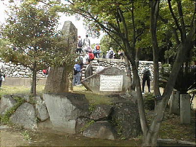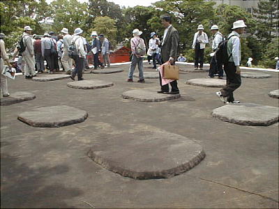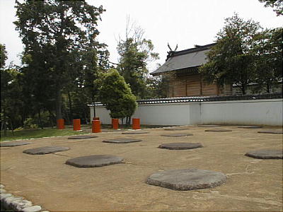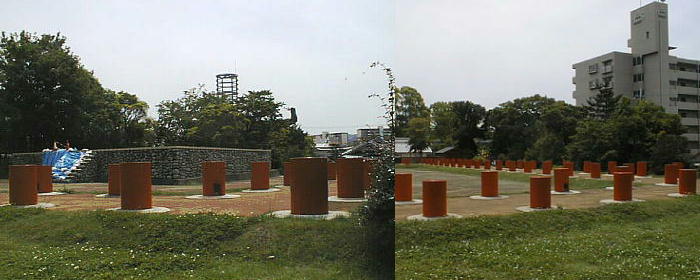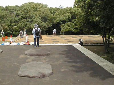 改築に伴い公園内に移動された、海会寺の礎石。もと一岡神社の境内にあった。
