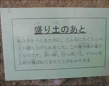 海会寺は、付近の一番高いところに建設されている。平坦な丘陵の上に2mにもなる盛り土をほどこして、その上に基壇