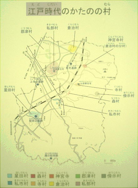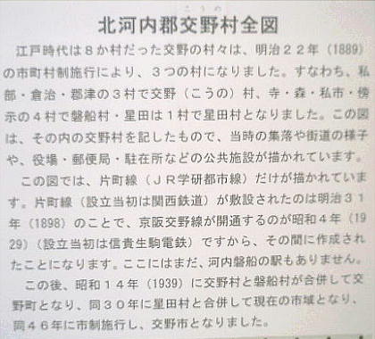 星田(ほしだ)村ができ、昭和14年、交野村と磐船村が合併し交野町(かたのちょう)となり、その後、昭和30年、町村合