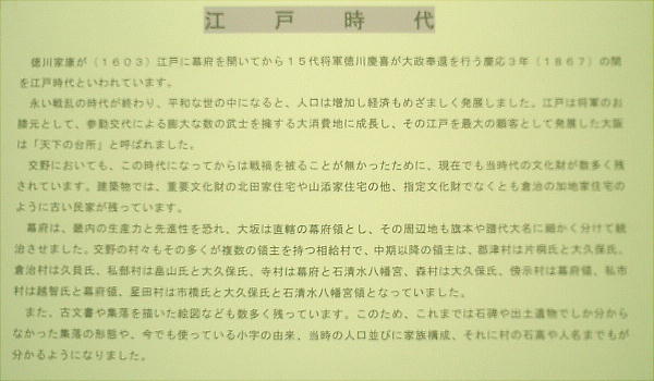 候の支配を受け、以後300年間、ささやかながらも泰平の生活が続いた。明治維新以後、堺県、河内県と管轄が変転したが、