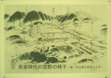 いては、丘陵と平地が交迭するからとも言い、また、淀川流域の低地から見ると丘陵上の平地とも見えるので「肩野」と称せ