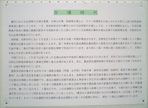ない。古墳の主は一体誰なのか。どこから来てこの交野に根付いたのであろうか。大和朝廷へと発展する大きな流れの中にこの