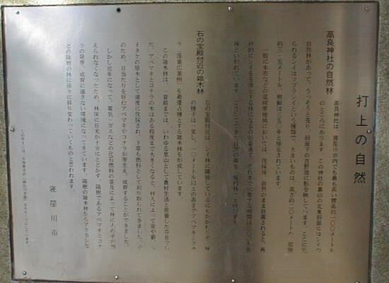 打上神社(高良神社)の奥に、八角形をしていた可能性が考えられる石宝殿古墳がある。北河内では唯一の、古墳時代末期