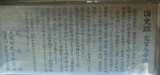 昭和28年の大阪府教育委員会による発掘調査および昭和54年の寝屋川市教育委員会による調査の結果、白鳳時代の大伽藍で