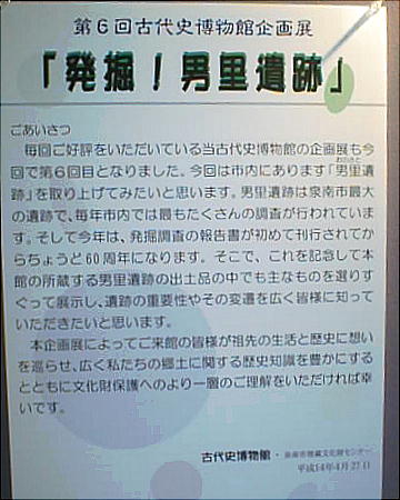 男里遺跡は、泉南地域における弥生時代の拠点集落として知られている。遺跡の存在は早くから知られていたが、主要地方