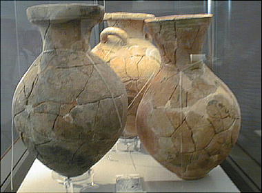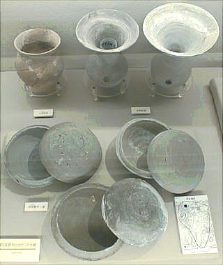 土器には把手のついた壷、水差し形の土器、高杯などがあり、把手(とって)のついた土器が比較的多く出土しているのが