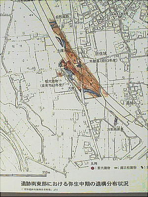 群や古墳時代前期の竪穴式住居跡が見つかっている。とくに弥生時代中期の竪穴式住居跡のなかには、側壁を持ったと考え