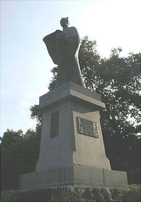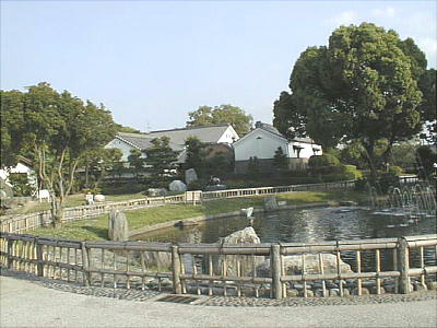 かつて学校の校舎として使われていたが、今はモニュメントとして、この碑だけが残っている。園内には江戸中期の商家「笹井家住宅」
