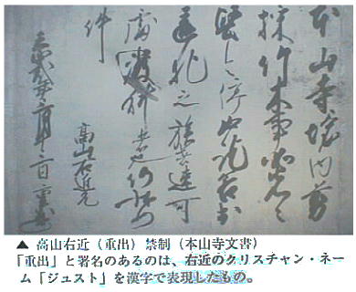 自由を認め、寺社を今までどおり保証するという右近の文書も発見されている。信長や当時の武将たちの間でもキリシタンへの信頼