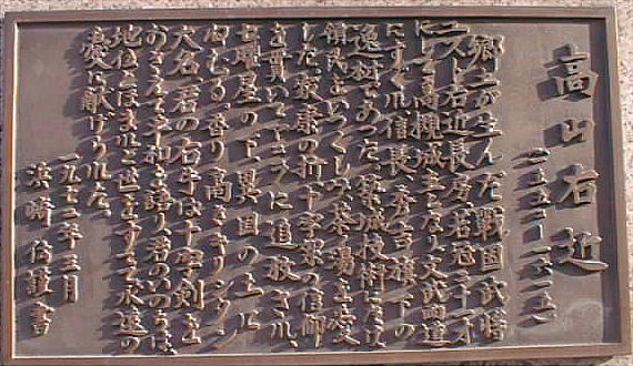 高槻城といえば高山右近である。戦国時代のキリシタン大名として名をはせ、やがて秀吉・家康に追われ、遠くマニラの地で没した