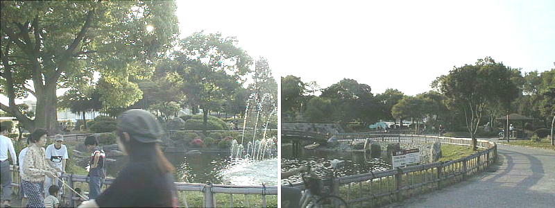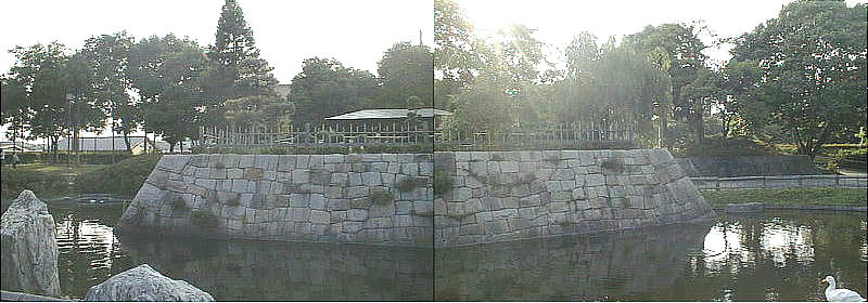 高槻城跡につくられた公園。かつて高槻城の三の丸があった園内には休憩所や堀を模倣した石垣・池・野球場・プール・交通遊園な